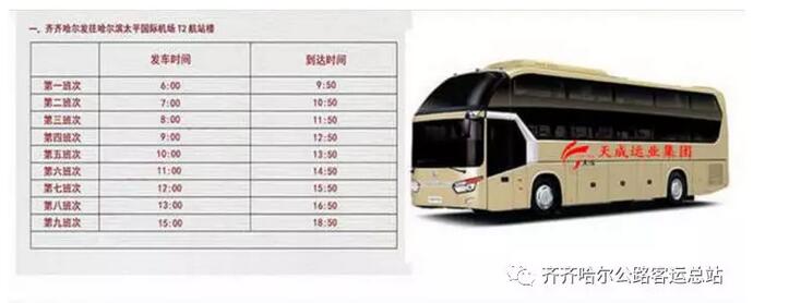 機(jī)場巴士共經(jīng)營兩條線路,分別為齊齊哈爾——哈爾濱太平機(jī)場,齊齊哈爾——大慶薩爾圖機(jī)場。