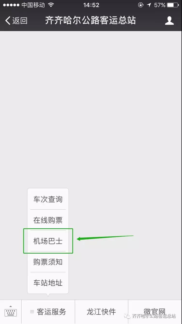 1.在微信里打開“齊齊哈爾客運(yùn)總站”公眾號