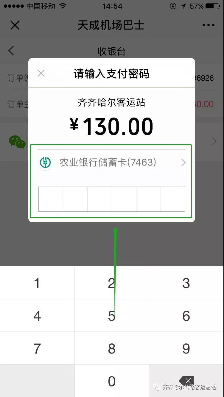 6.點(diǎn)擊微信支付。輸入支付密碼完成購票。